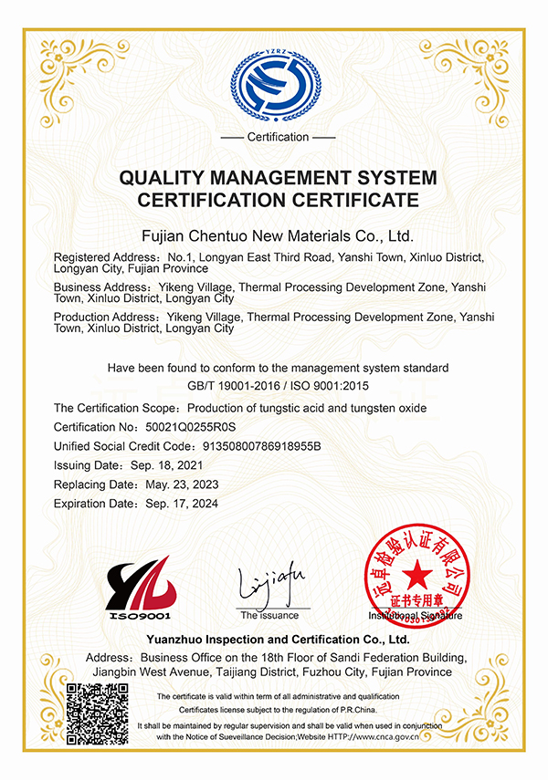 質(zhì)量管理體系監(jiān)督認證證書